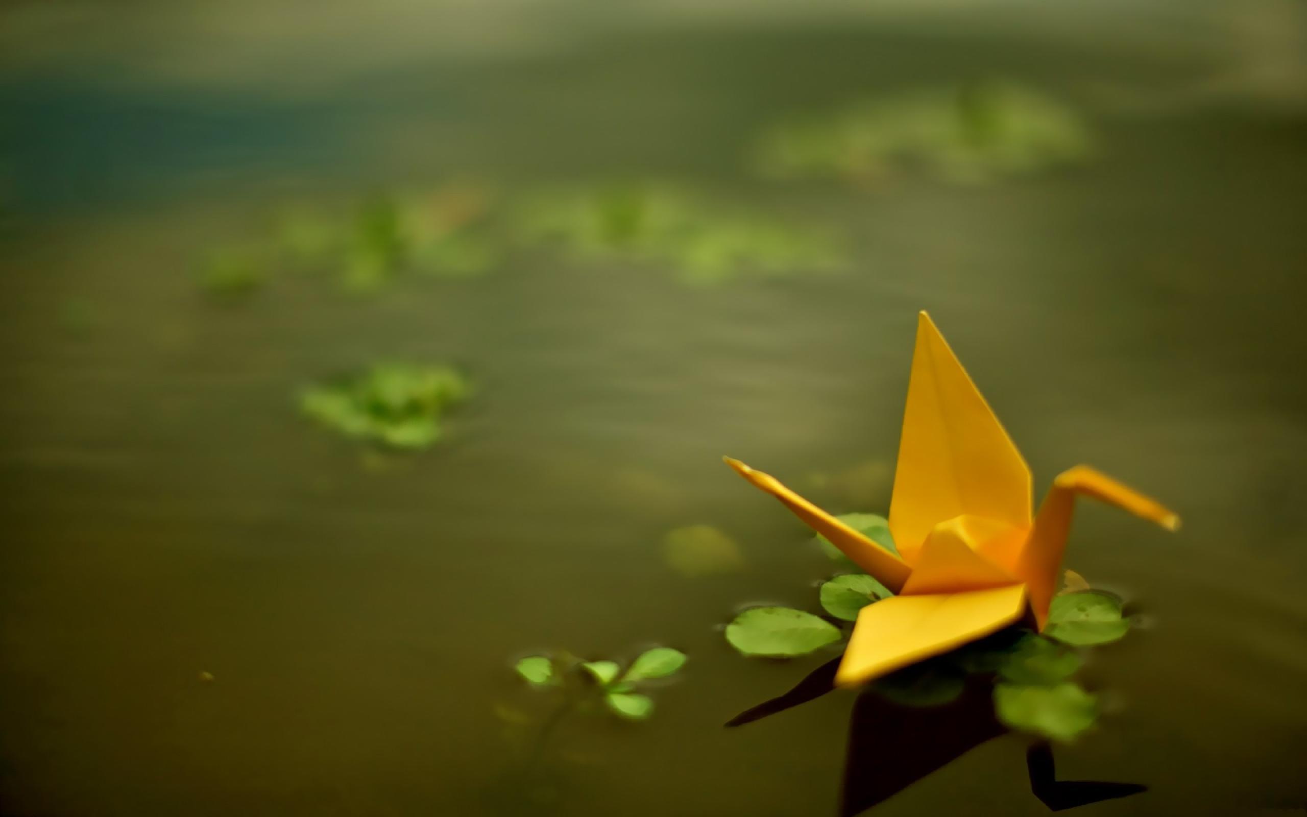 Обои Оригами из желтой бумаги в воде
