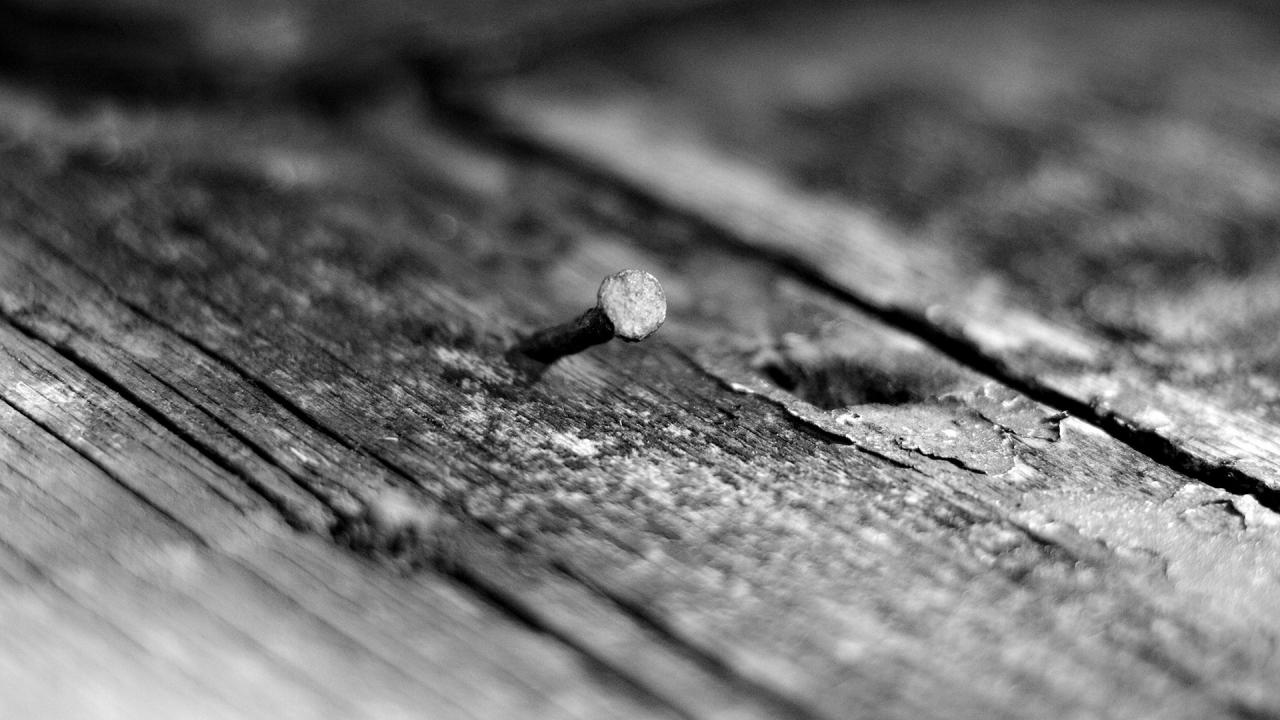 Обои Кривой гвоздь в дереве