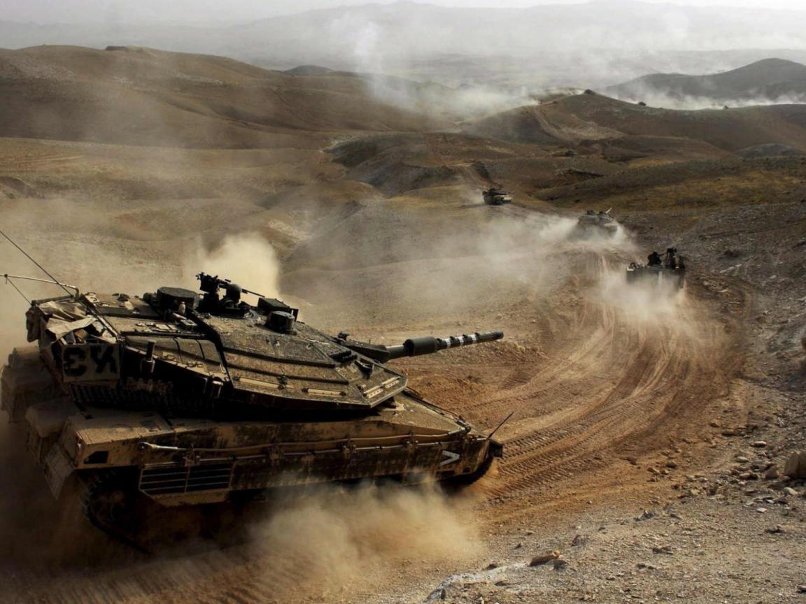 Обои Танки на марше в пустынной местности