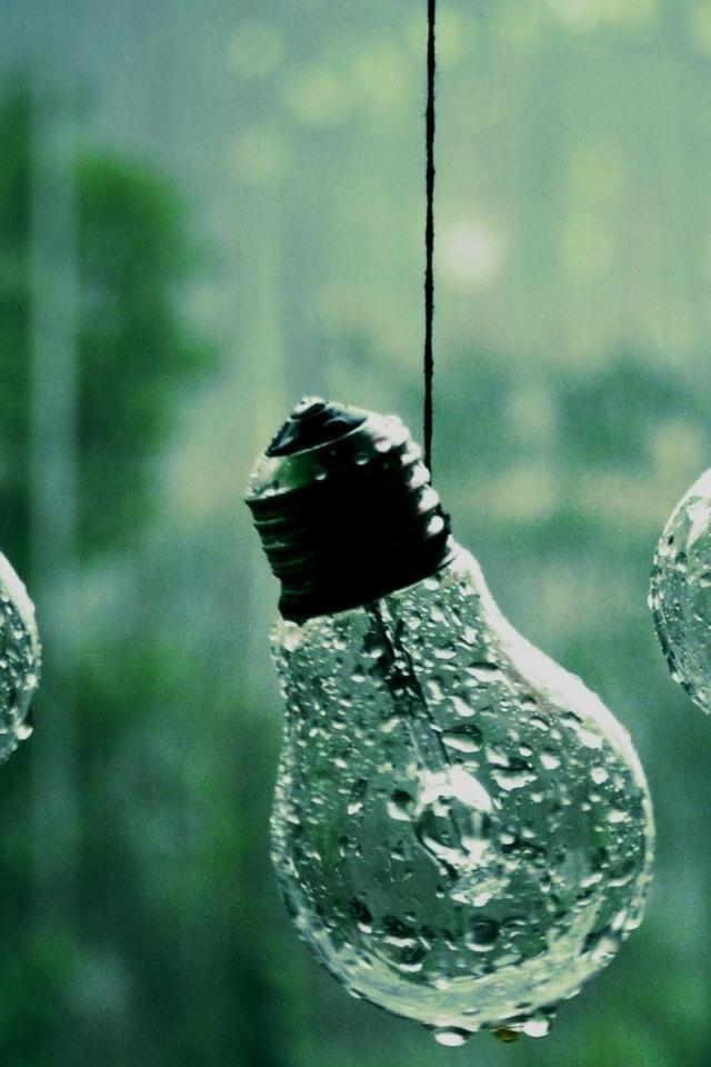 Обои Лампочки висят на веревках под дождем