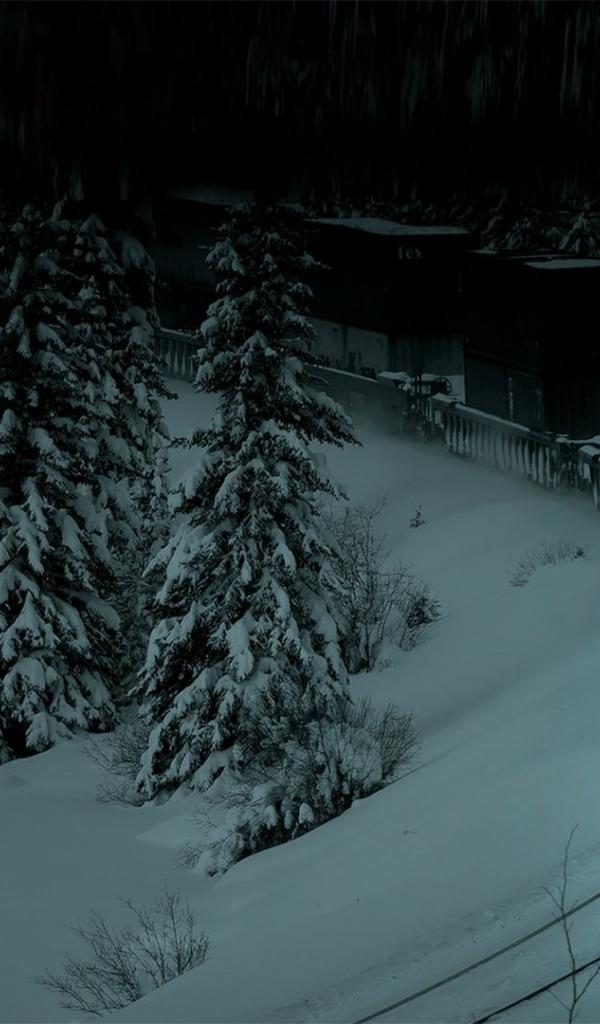 Обои Поезд выезжает из заснеженного леса