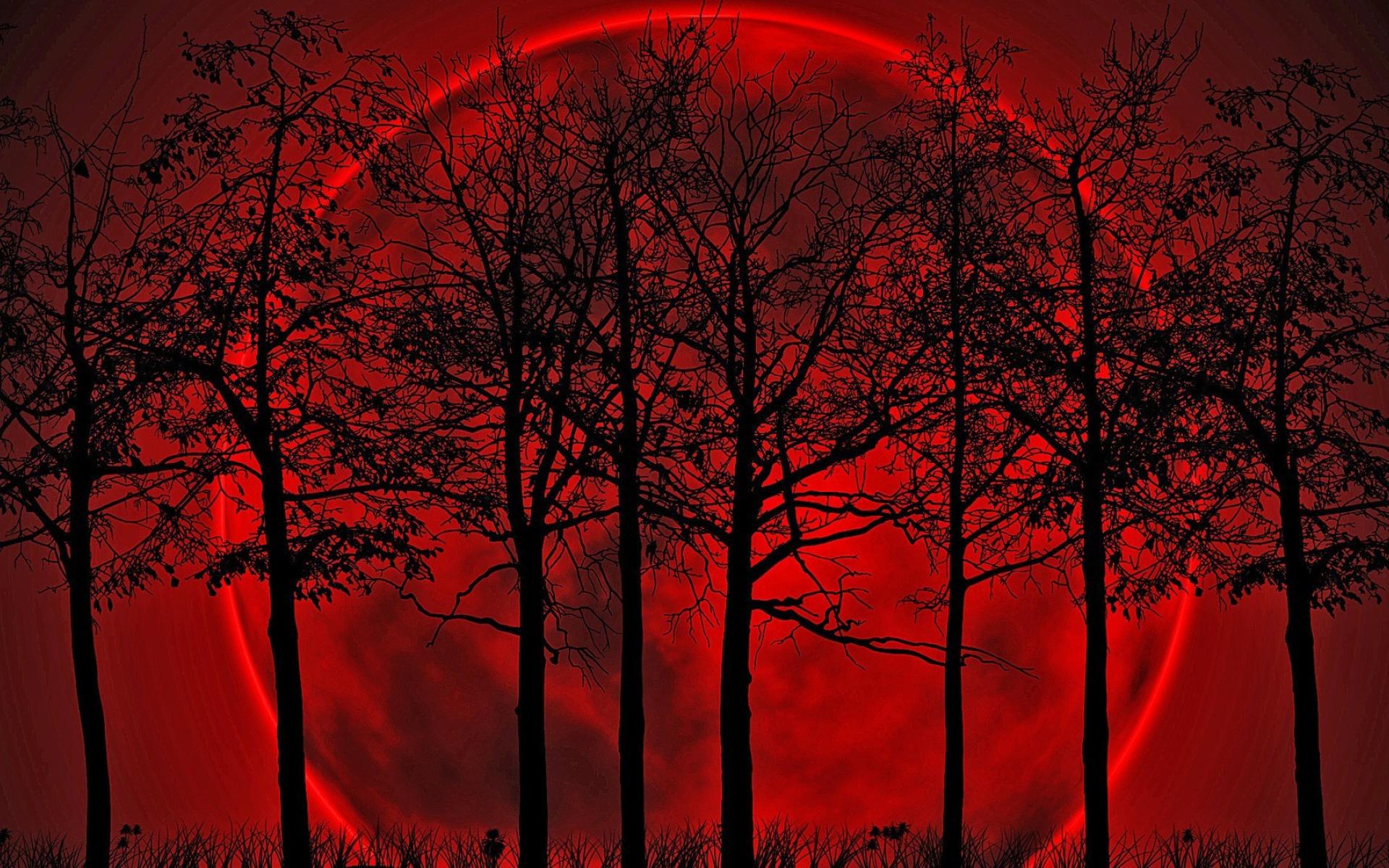 Обои Деревья на фоне кровавой луны