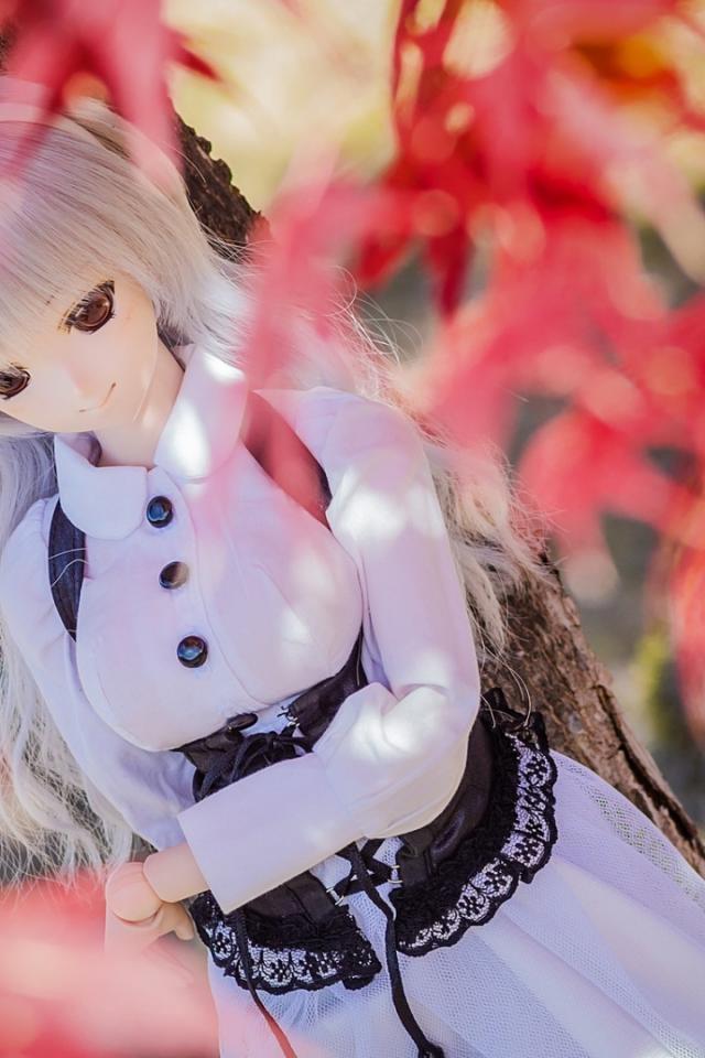 Обои Кукла среди осенней листвы