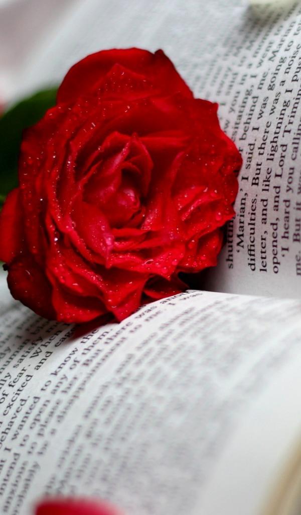 Обои Красная роза среди страниц