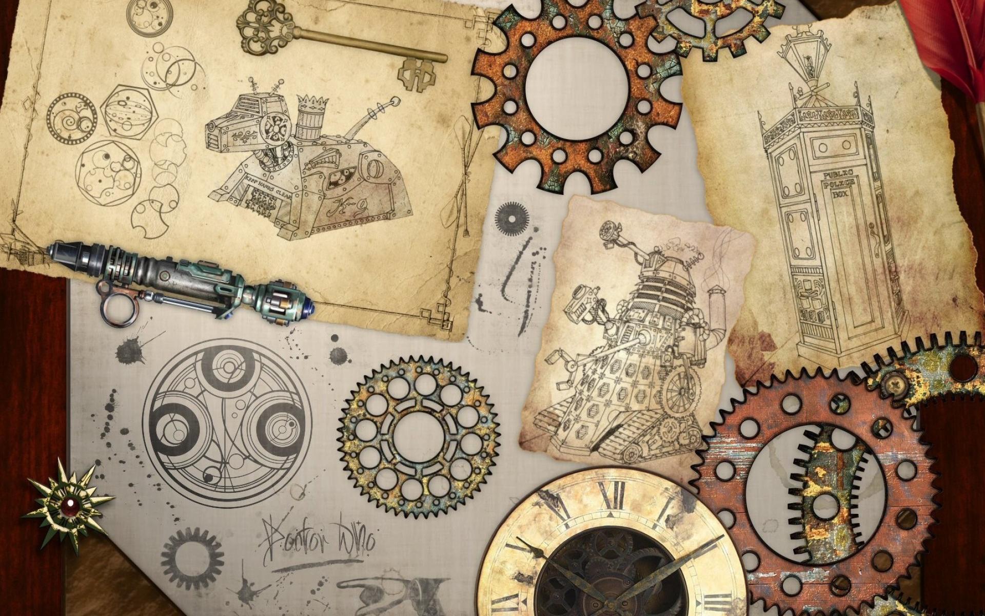 Обои Чертежи и шестеренки, стимпанк