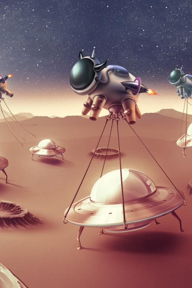 Обои Коровы похищают инопланетян