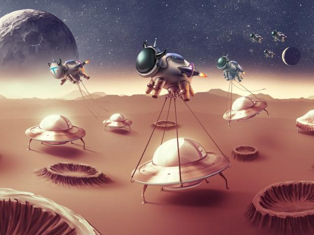 Обои Коровы похищают инопланетян
