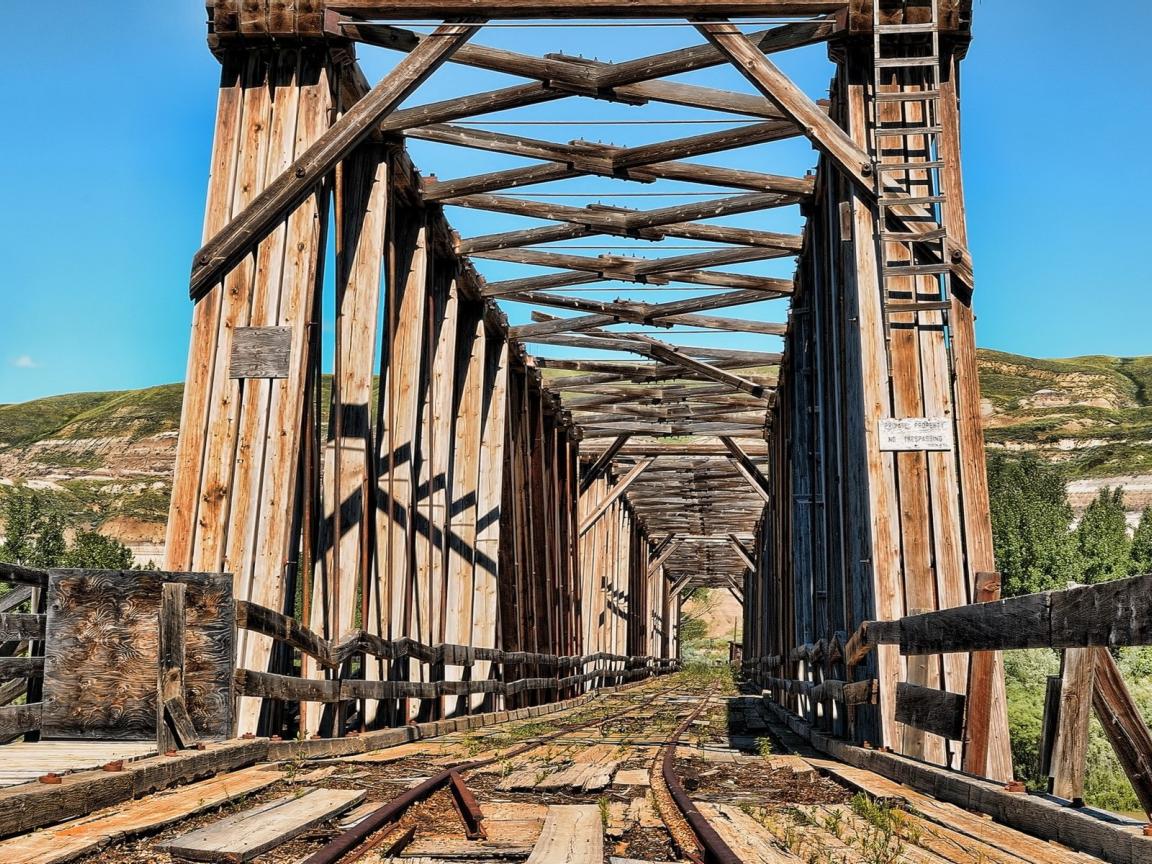 Обои Деревянный железнодорожный мост