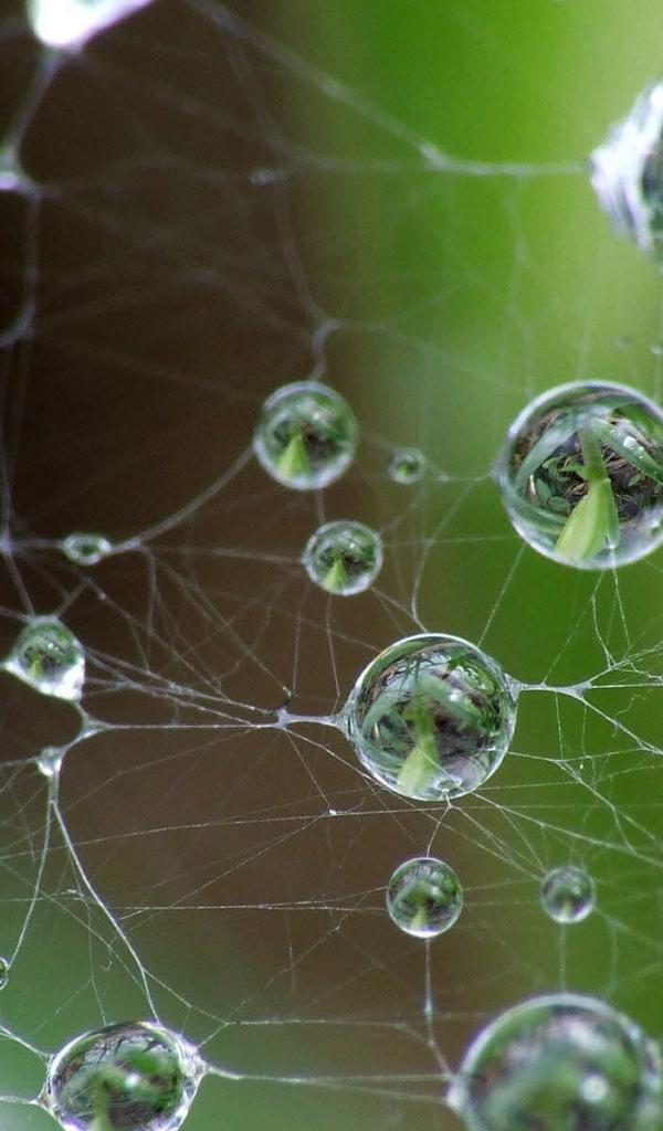 Обои Капли росы на паутине