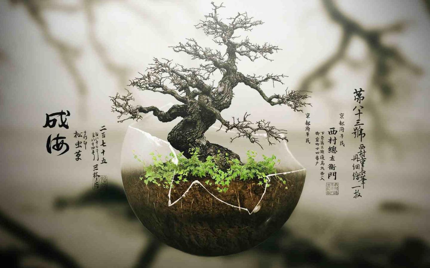 Обои Японский бонсай в прозрачной скорлупе