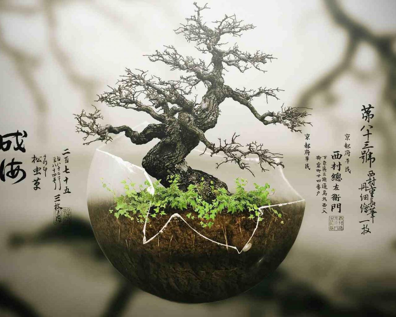 Обои Японский бонсай в прозрачной скорлупе