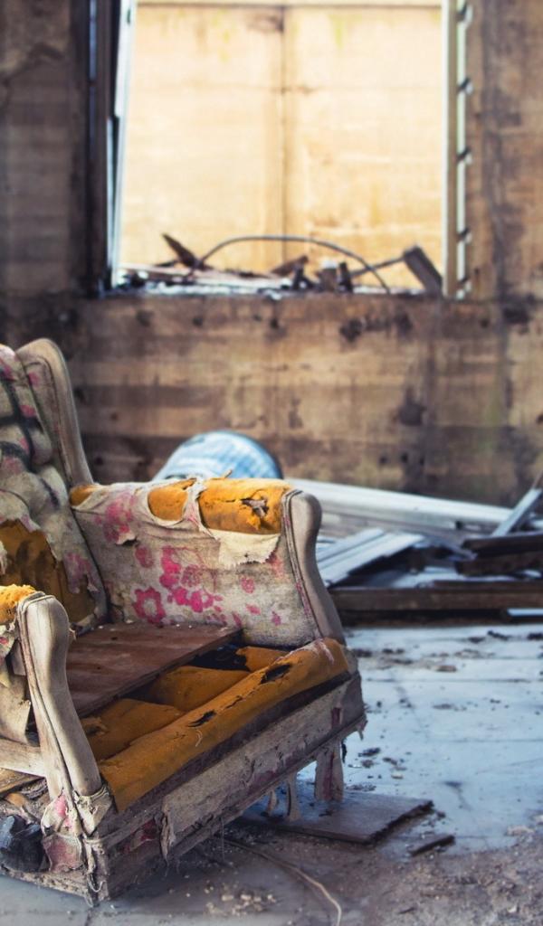 Обои Старое кресло в разрушенном доме
