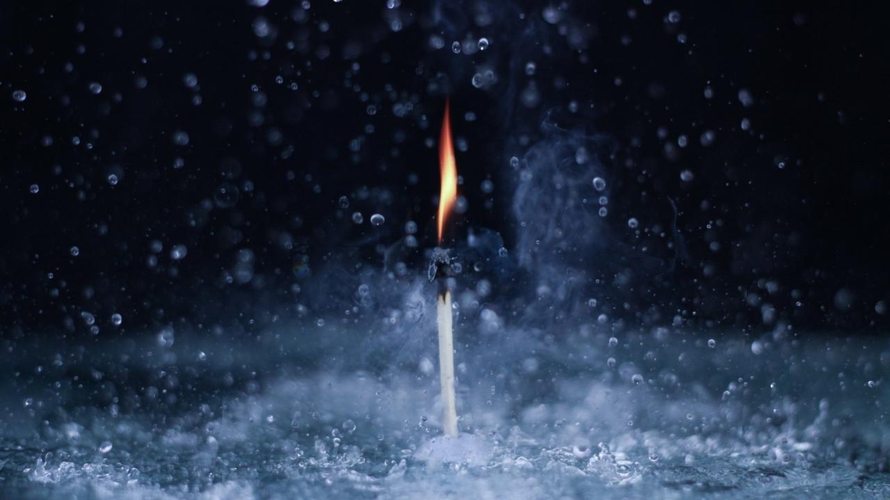 Обои Горящая спичка под дождем