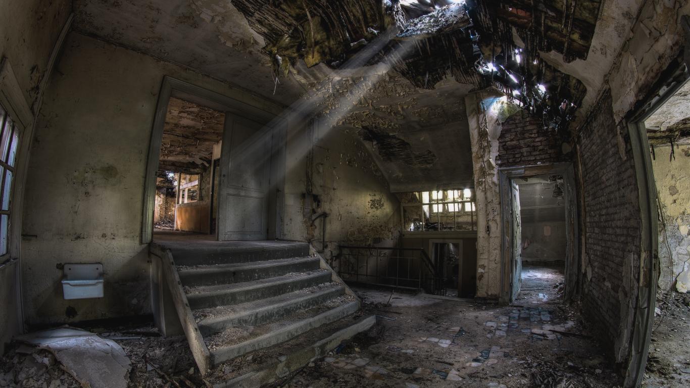 Обои Разрушенный дом с дырой в потолке