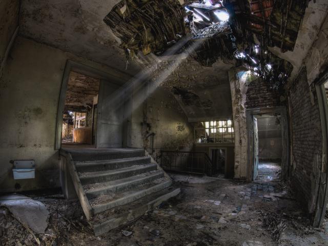 Обои Разрушенный дом с дырой в потолке