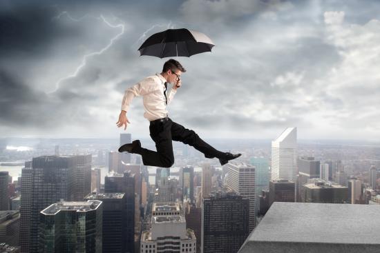 Обои Человек летит на зонтике