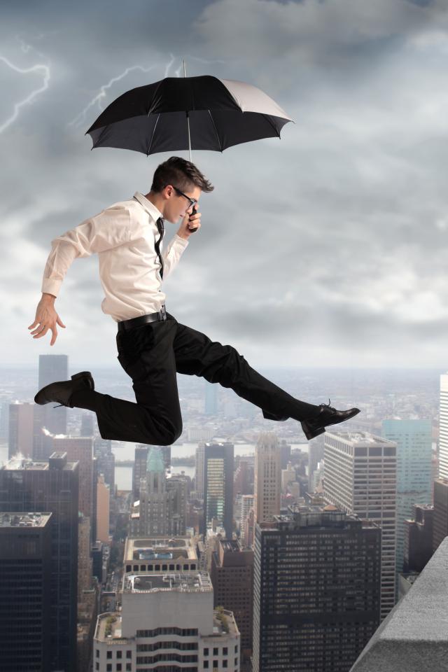 Обои Человек летит на зонтике