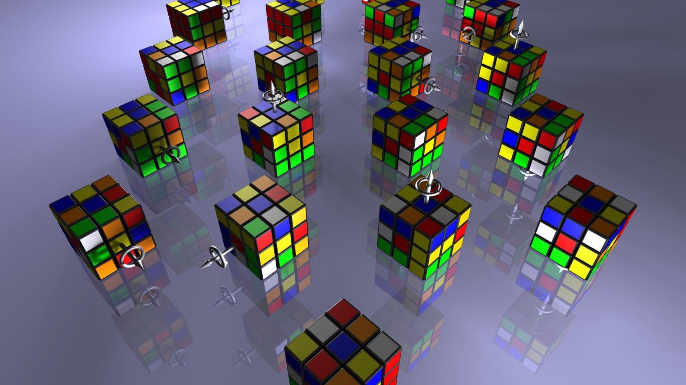 Обои Зеленая и фиолетовая стороны кубика Рубика
