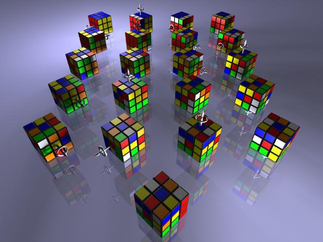 Обои Зеленая и фиолетовая стороны кубика Рубика