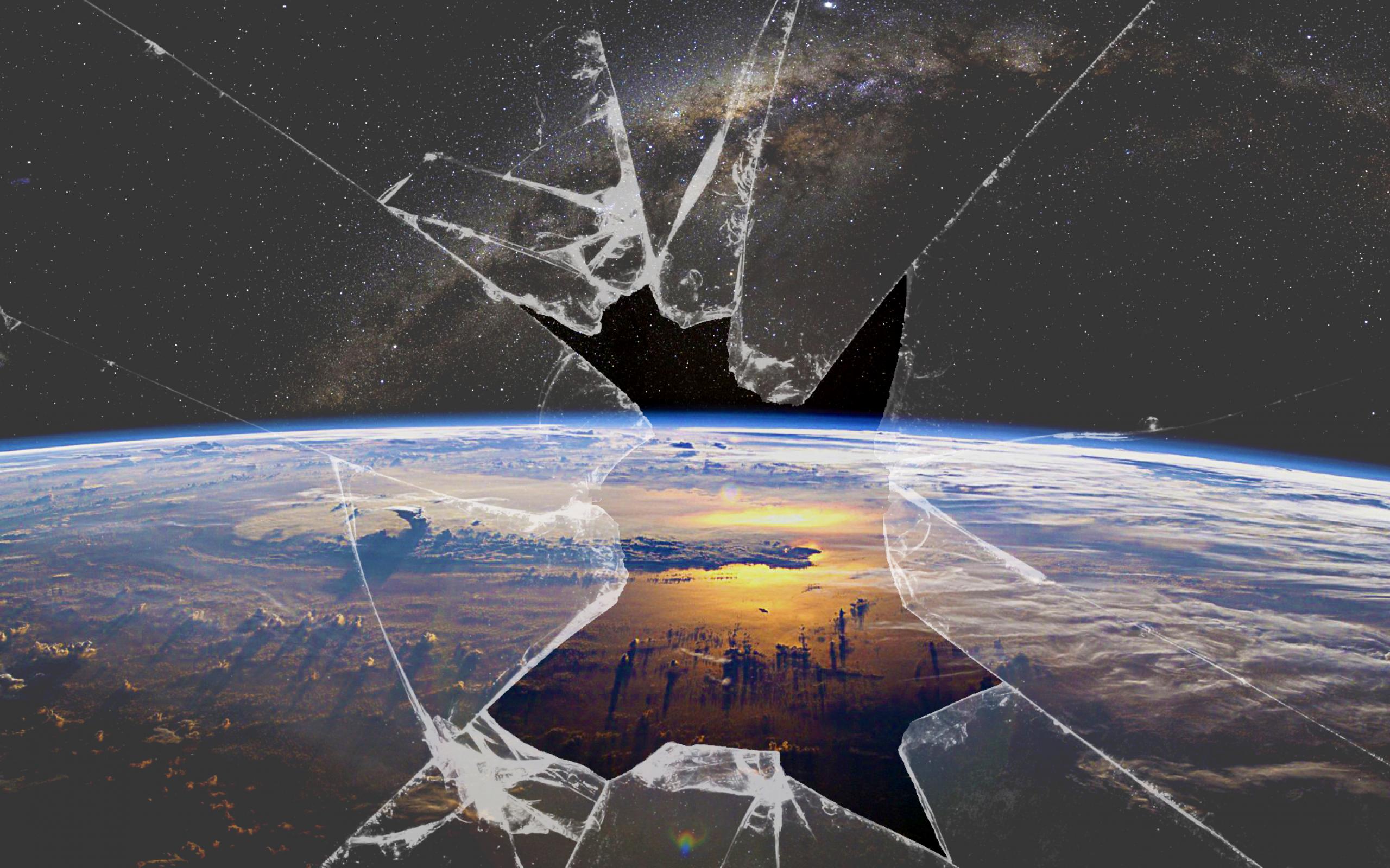 Обои Вид на Землю через разбитое стекло