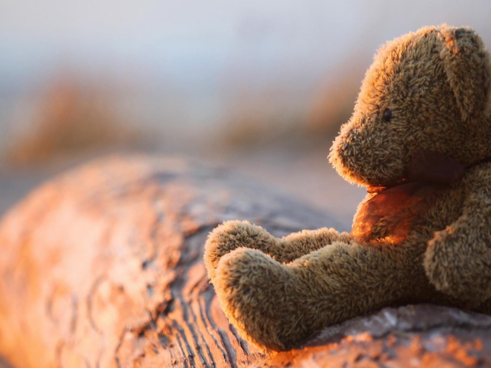 Обои Плюшевый мишка на закате