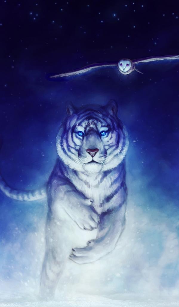 Обои Картина с белым тигром