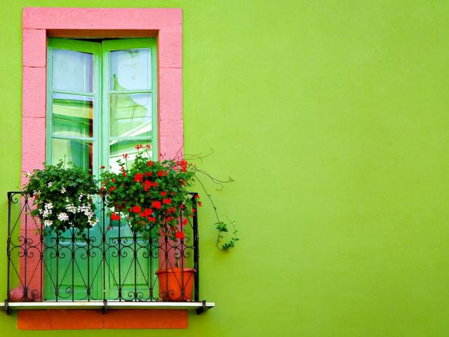 Обои Окно на зеленой стене