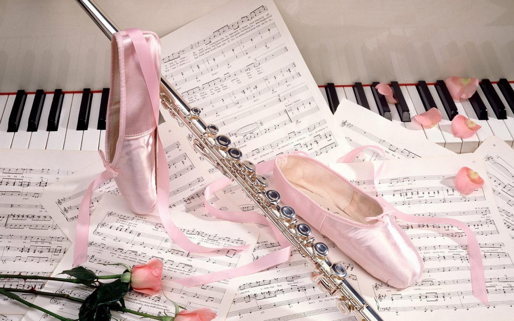 Обои Танцевальные тапочки и ноты