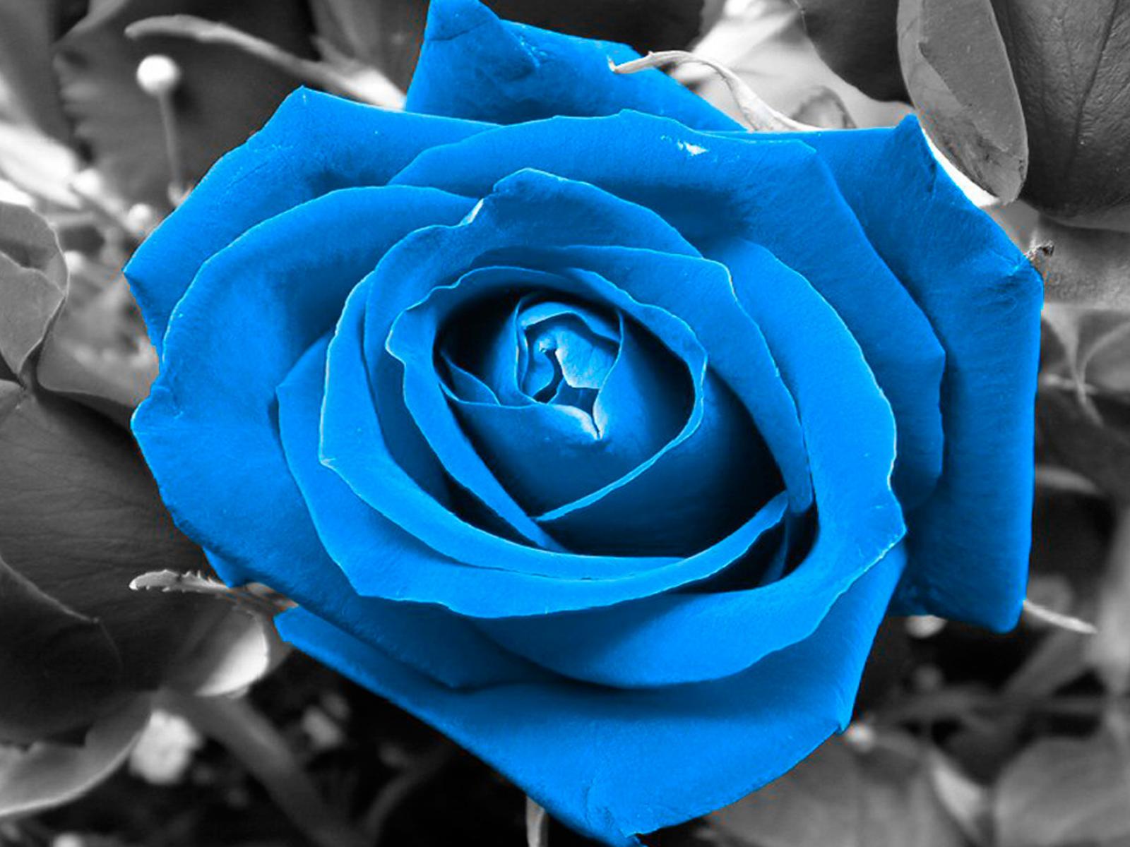 Обои Синяя роза на чёрно-белом фоне