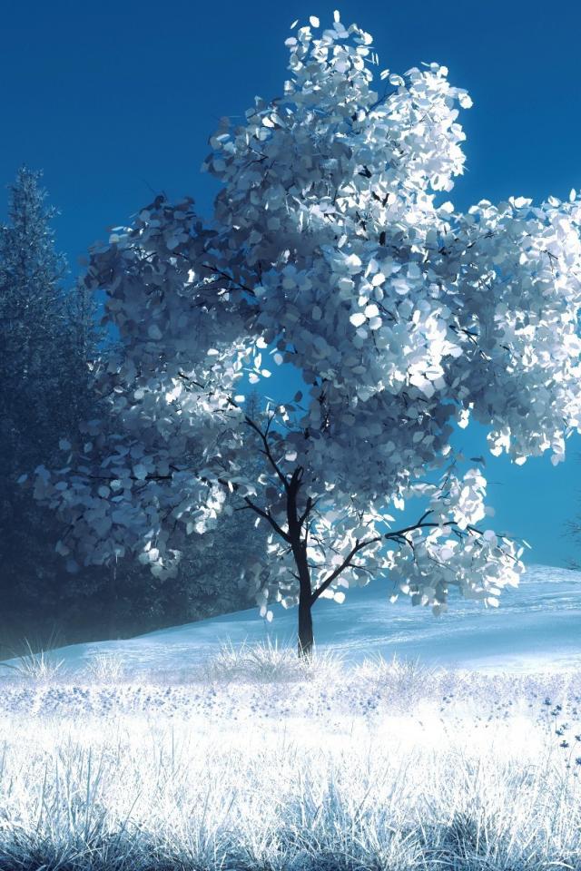 Обои Снег, Деревья, Скамейка, стиль
