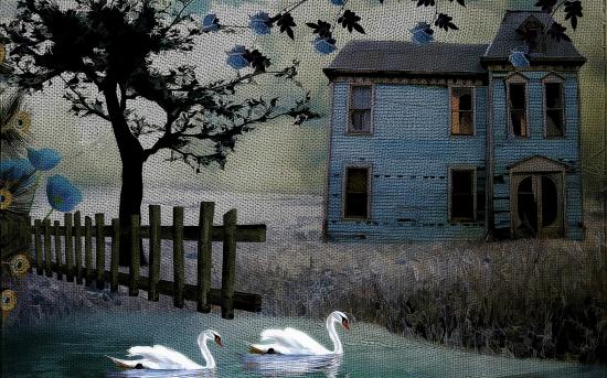 Обои Деревья, Дом, Белые лебеди, Лебедь