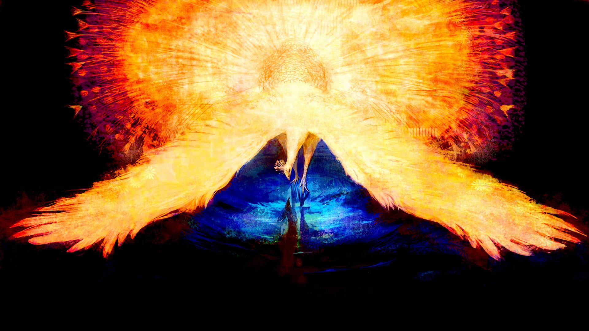 Обои Огонь, Отражение, крылья, павлин