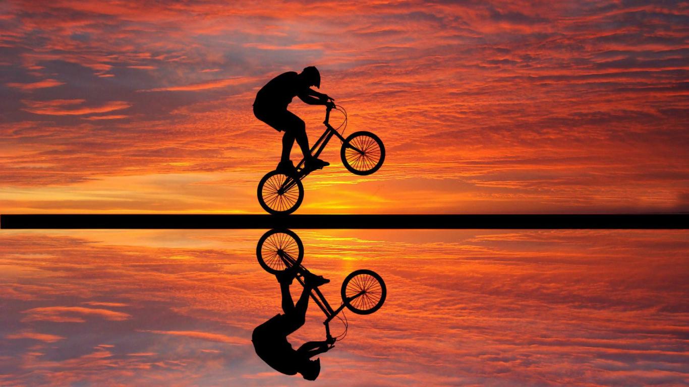 Обои Езда на велосипеде на фоне заката