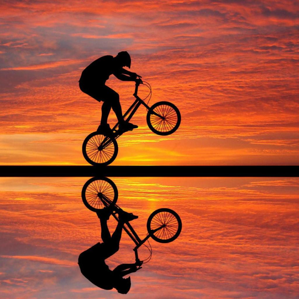 Обои Езда на велосипеде на фоне заката