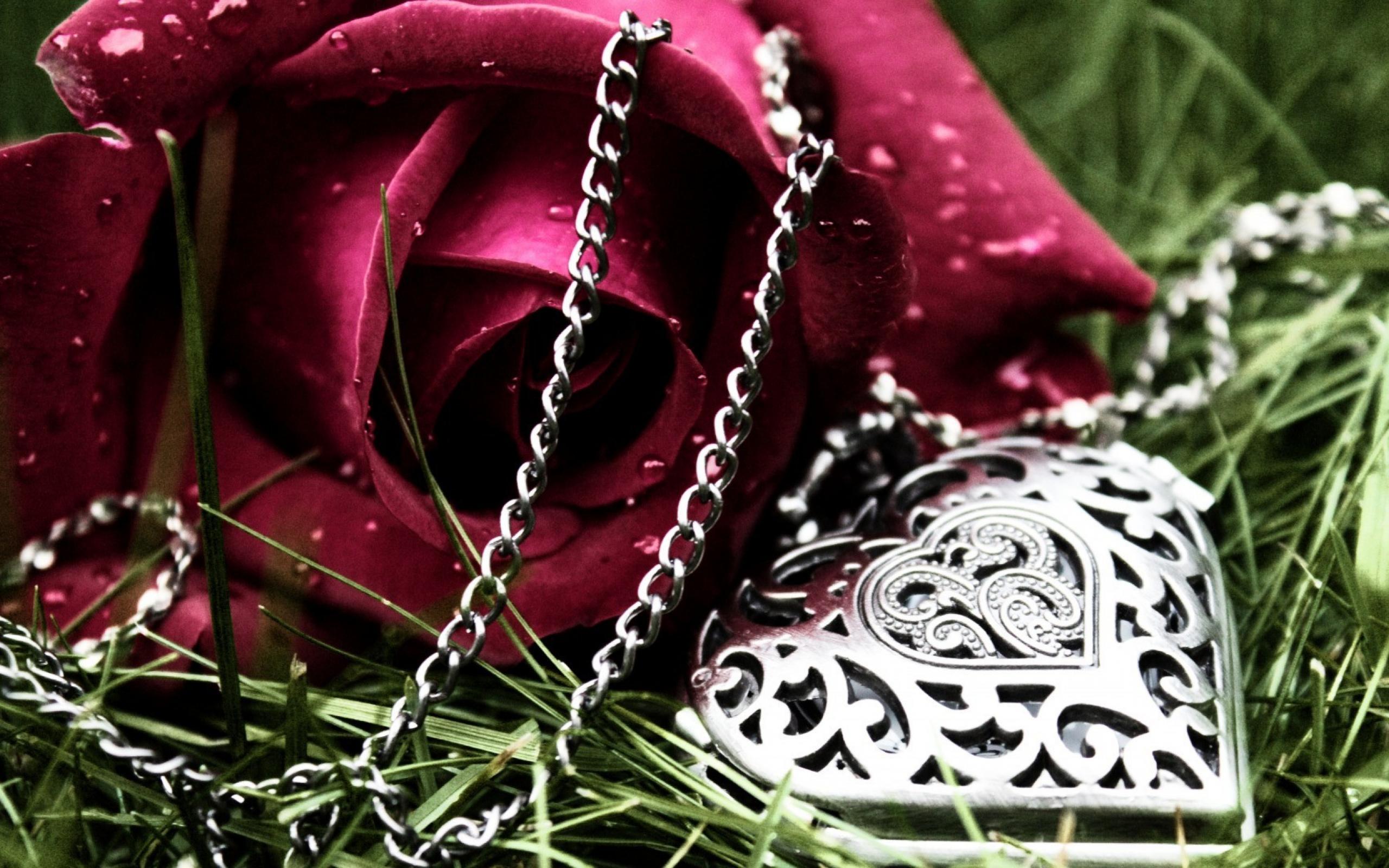 Обои Роза и кулон в форме сердца