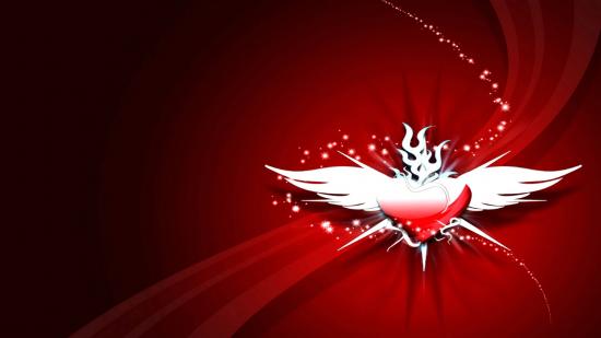Обои Сердечко с крыльями на красном фоне