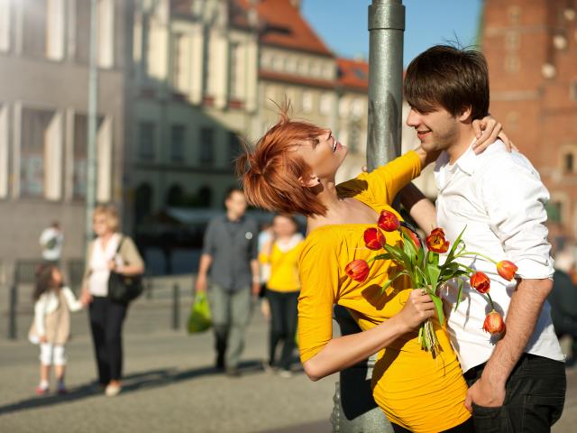 Обои Улица, Милая пара, Влюбленная девушка, любовные