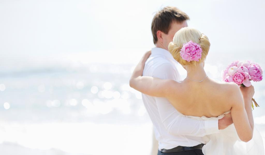 Обои Милая пара, Влюбленная девушка, свадьба, букет