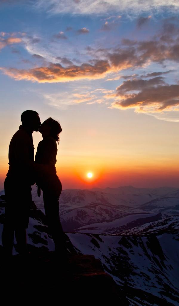 Обои Заснеженные горы, Поцелуй, любовные