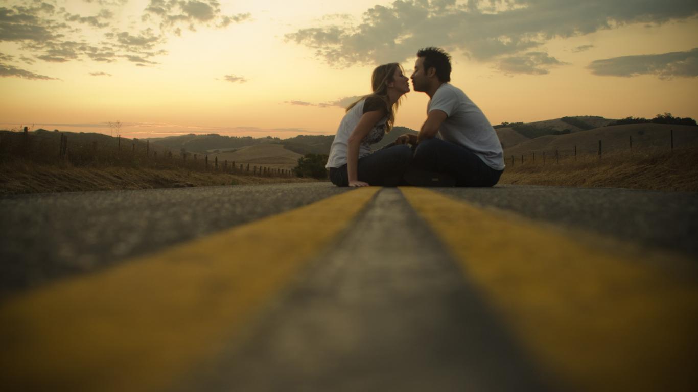 Обои Милая пара, Поцелуй, Влюбленная девушка