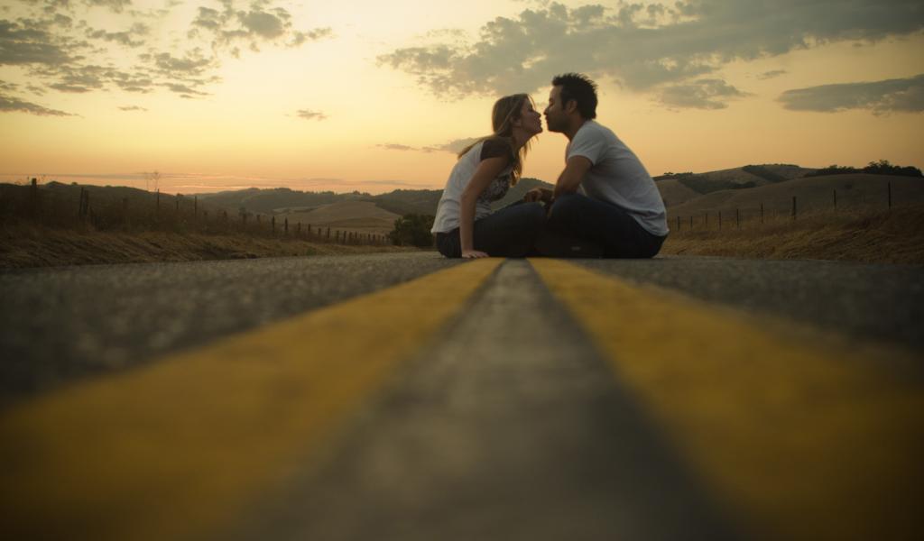 Обои Милая пара, Поцелуй, Влюбленная девушка