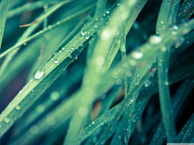 Обои Капли, Трава, Роса