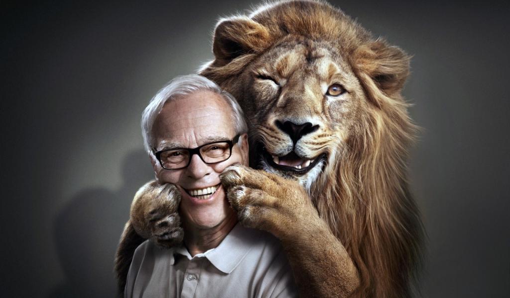 Обои Лев обнимает дрессировщика