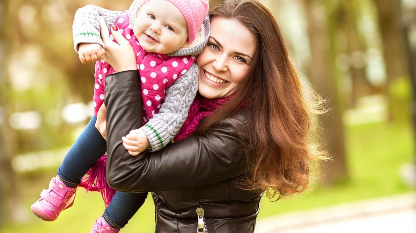 Обои Счастливая мама с малышом на руках