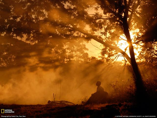 Обои Человек с велосипедом