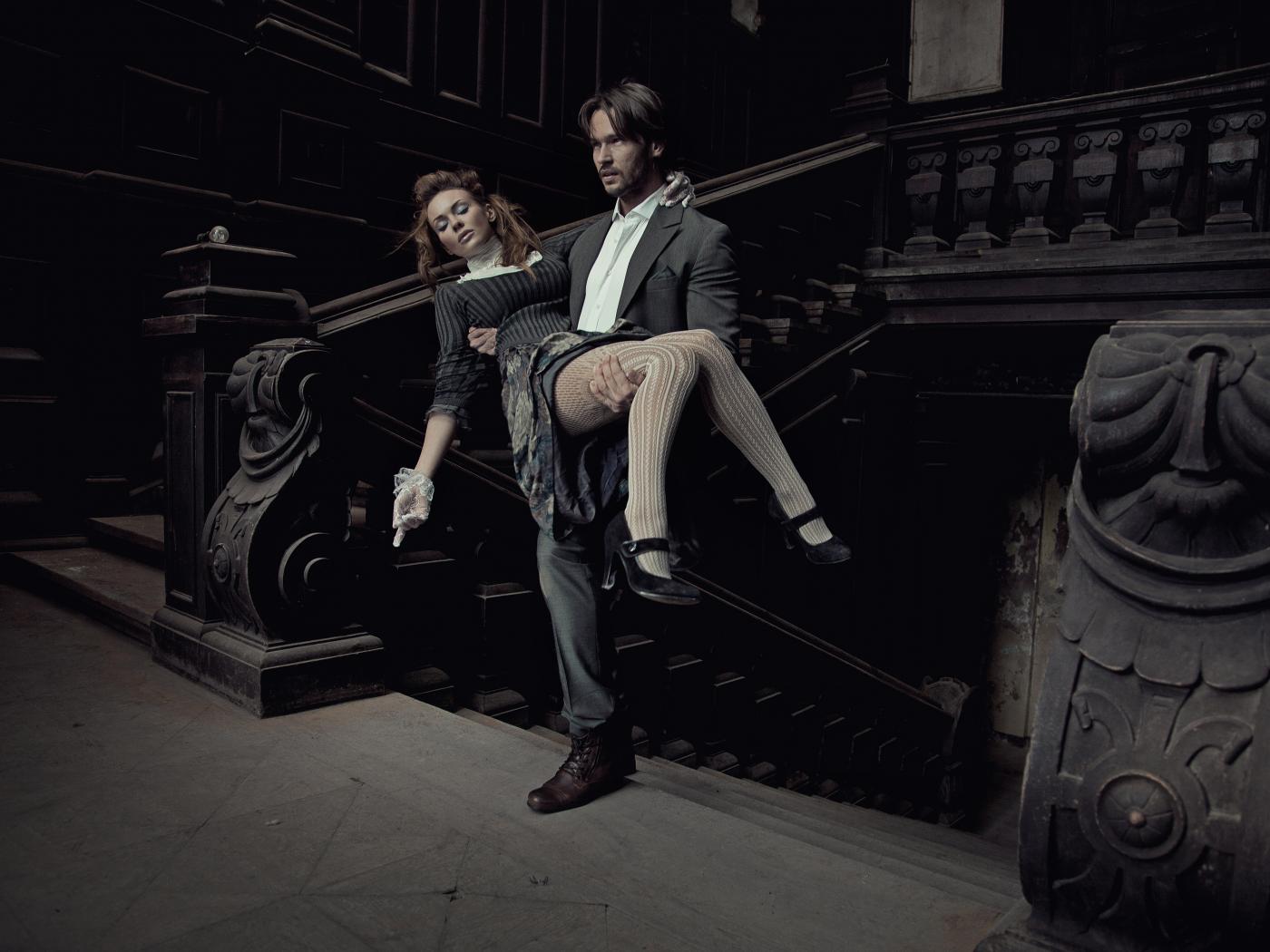 » Обои Парень, платье, ступени