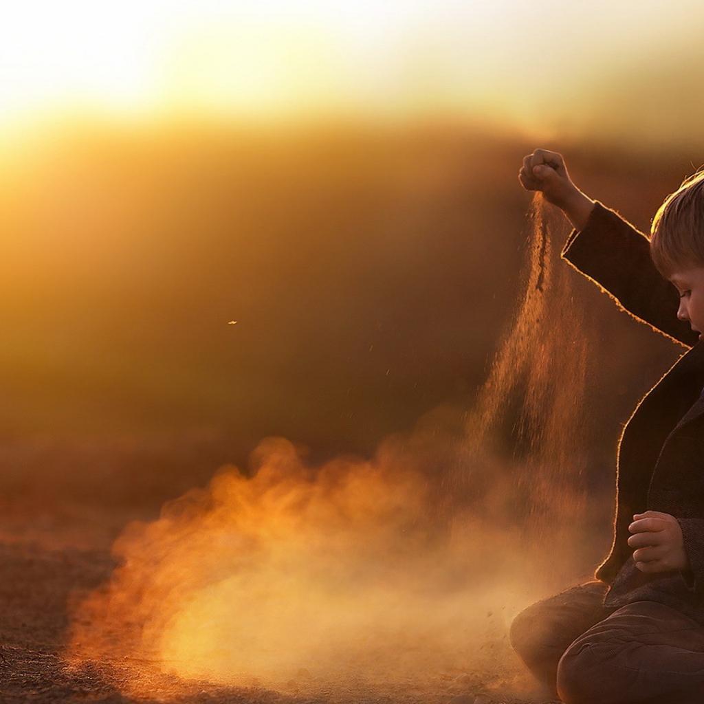 Обои Мальчик играет песком
