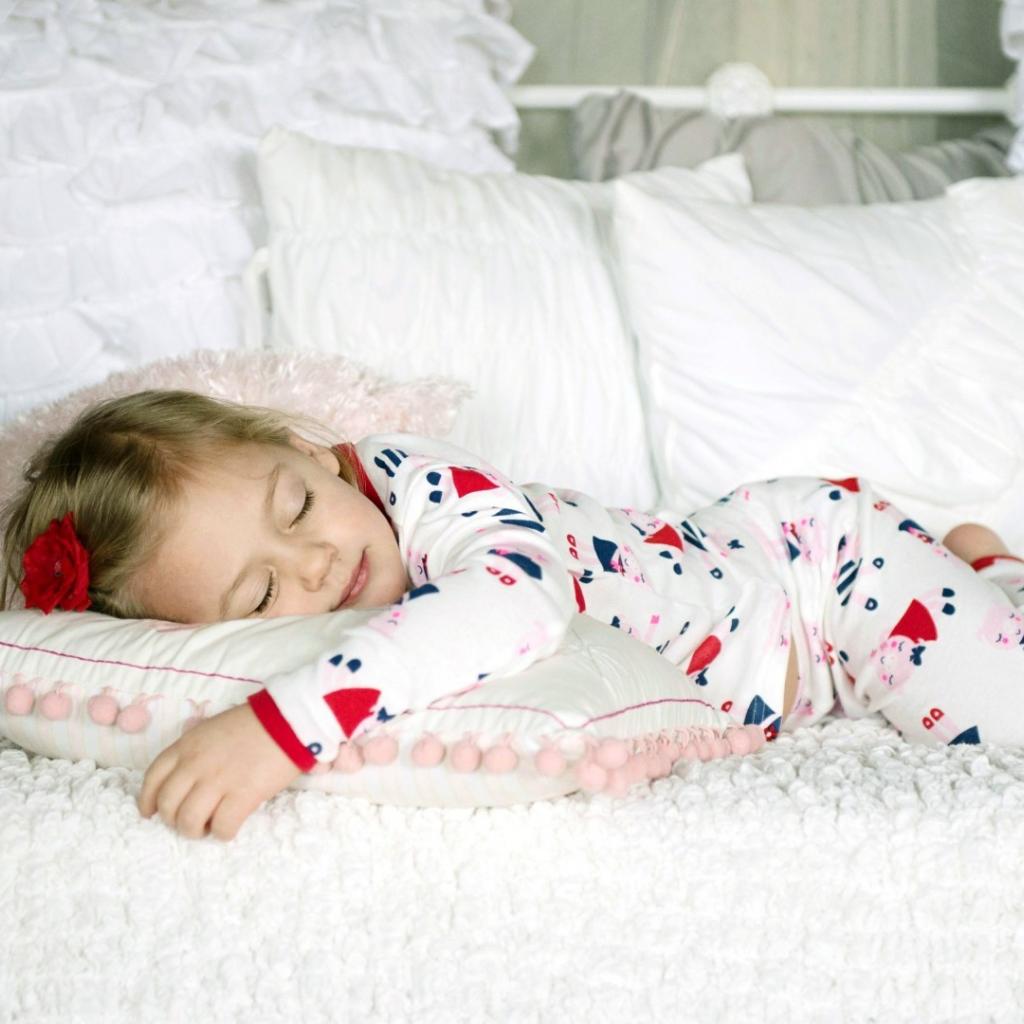 Обои Девочка в пижаме спит на кровати