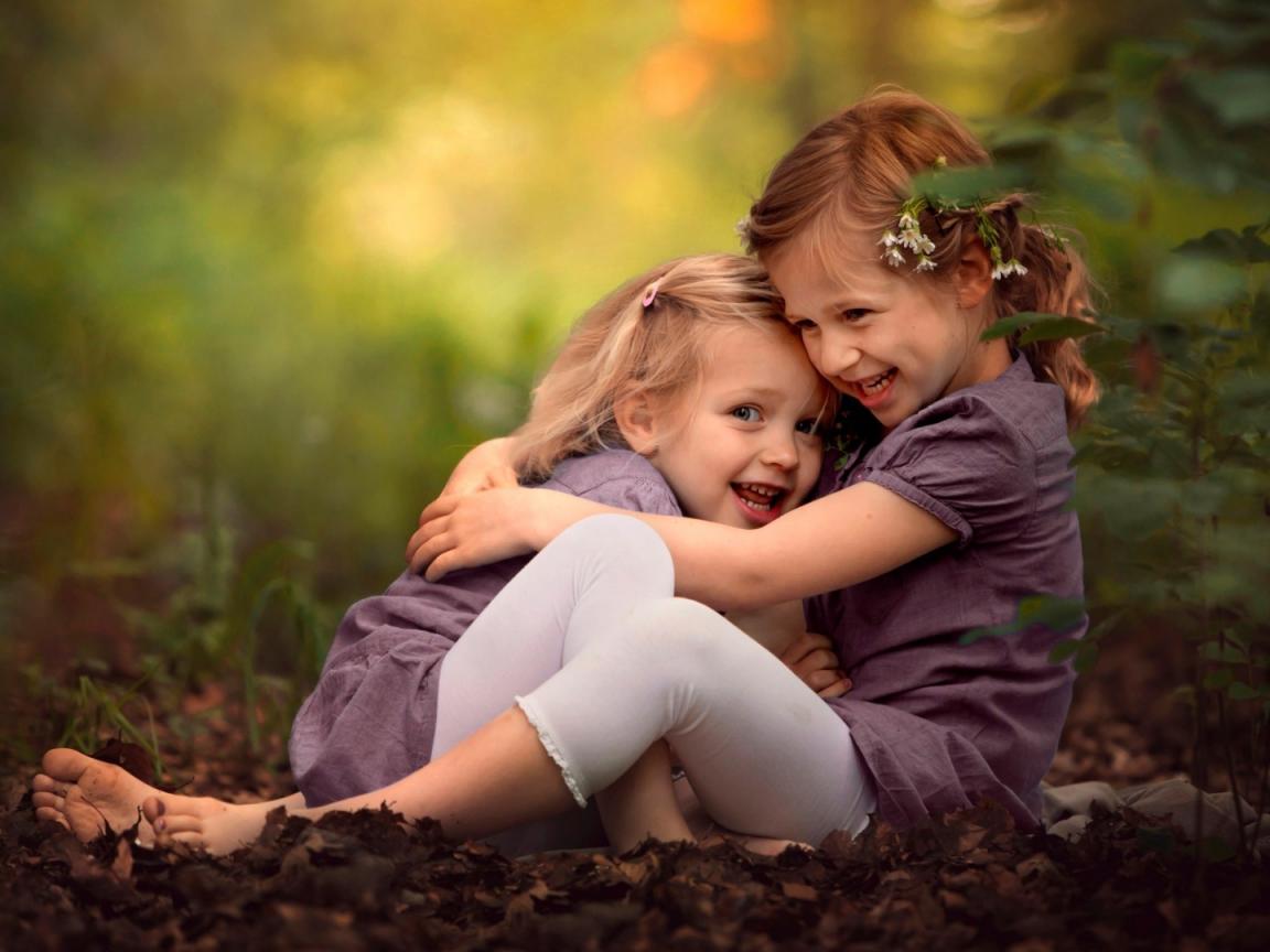 Обои Две милых сестрички играют в парке