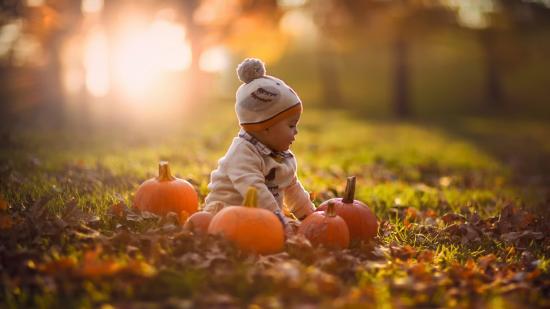 Обои Девочка играет с тыквами